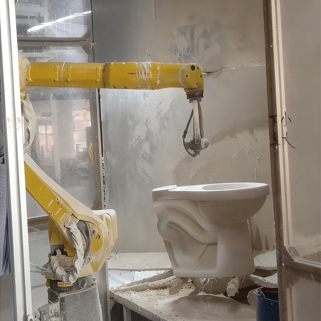 机器人施釉工作站是一种组合式自动化高效、优质机器人施釉项目,包括施釉搬运机器人、不锈钢施釉室、喷枪系统和电气柜。